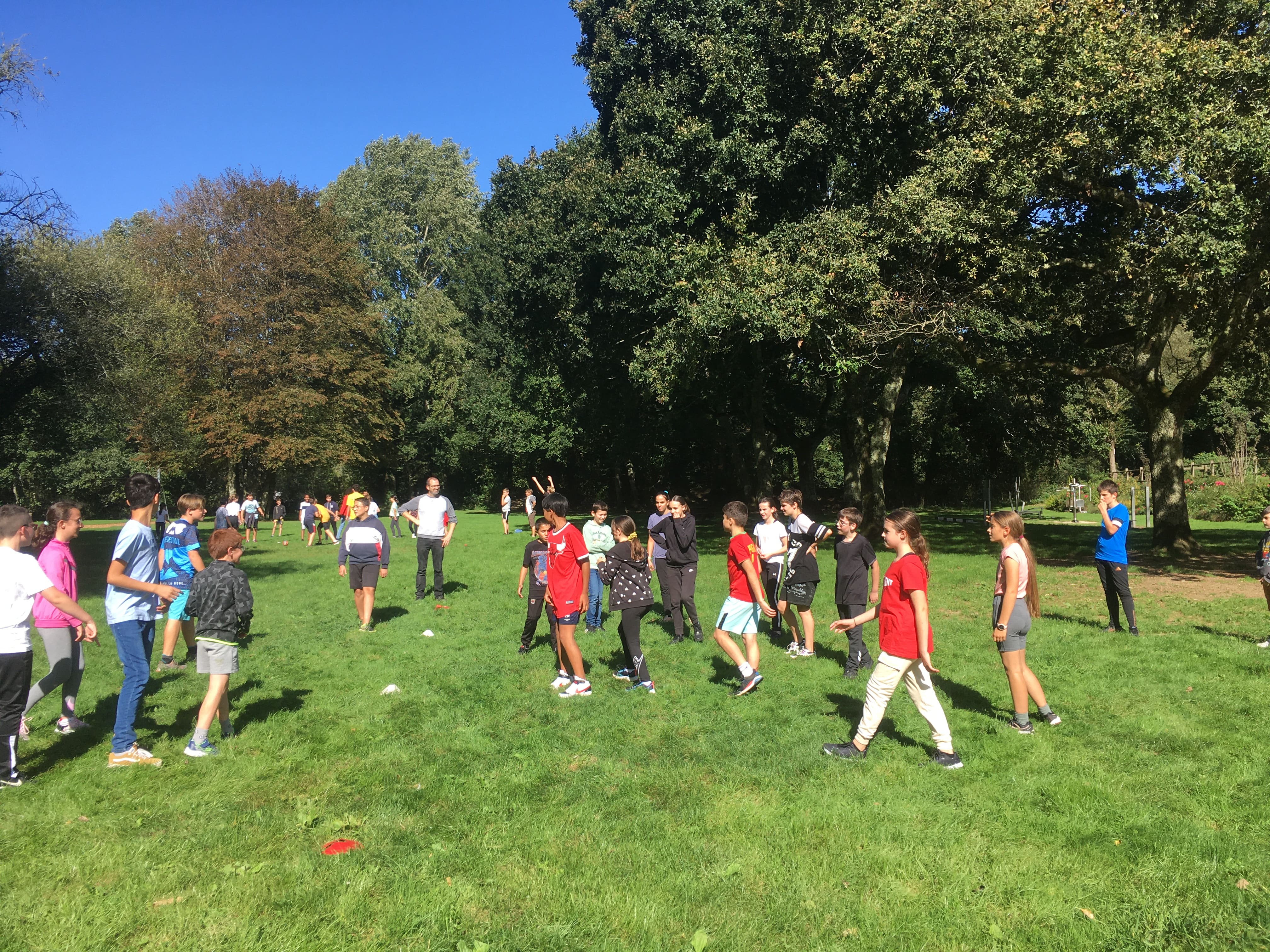 Le mardi 3 octobre s’est déroulée la journée d’intégration des élèves de 6e. Chacun d’entre eux était parrainé par un élève de 4e. Après avoir pique-niqué dans le magnifique parc des Gorrets qui se situe à deux pas du collège,  les binômes se sont mutuellement présentés à l'aide, notamment, d’un objet qu'ils avaient apporté et qui les représentait. La suite de l’après-midi s’est partagée entre différents jeux : chef d'orchestre, ballon prisonnier et tir à la corde. Une belle après-midi pour apprendre à se connaître et s’amuser tous ensemble !