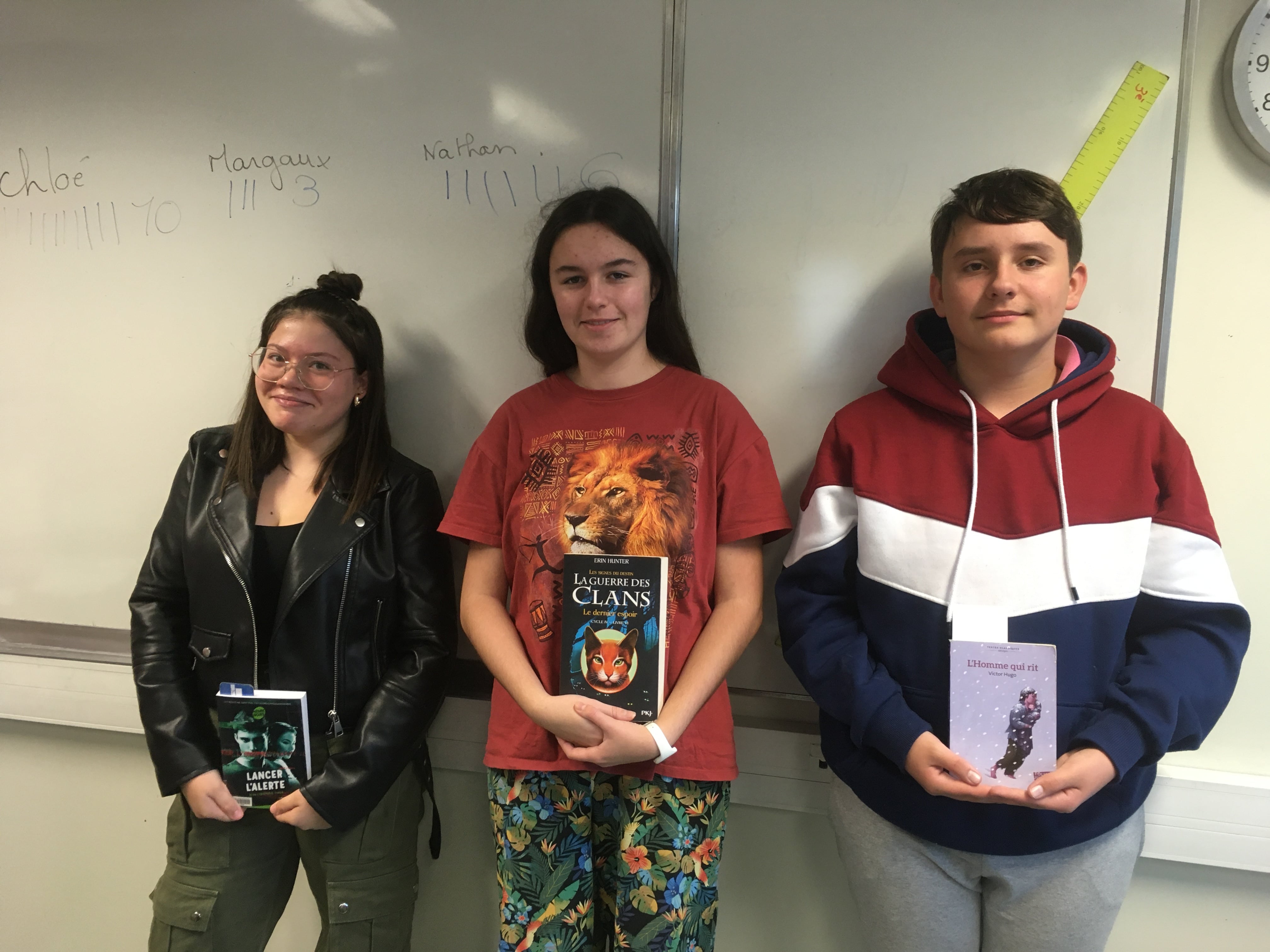 Les élèves de 3e participent au concours de la Grande Librairie "Si on lisait à voix haute ?". Ils étaient trois à devoir être départagés après avoir lu à la classe, l'extrait d'un roman qu'ils avaient choisi. C'est Chloé qui a été désignée pour représenter la classe. Bravo à elle ainsi qu'à Margaux et Nathan qui se sont prêtés au jeu avec beaucoup de talent !