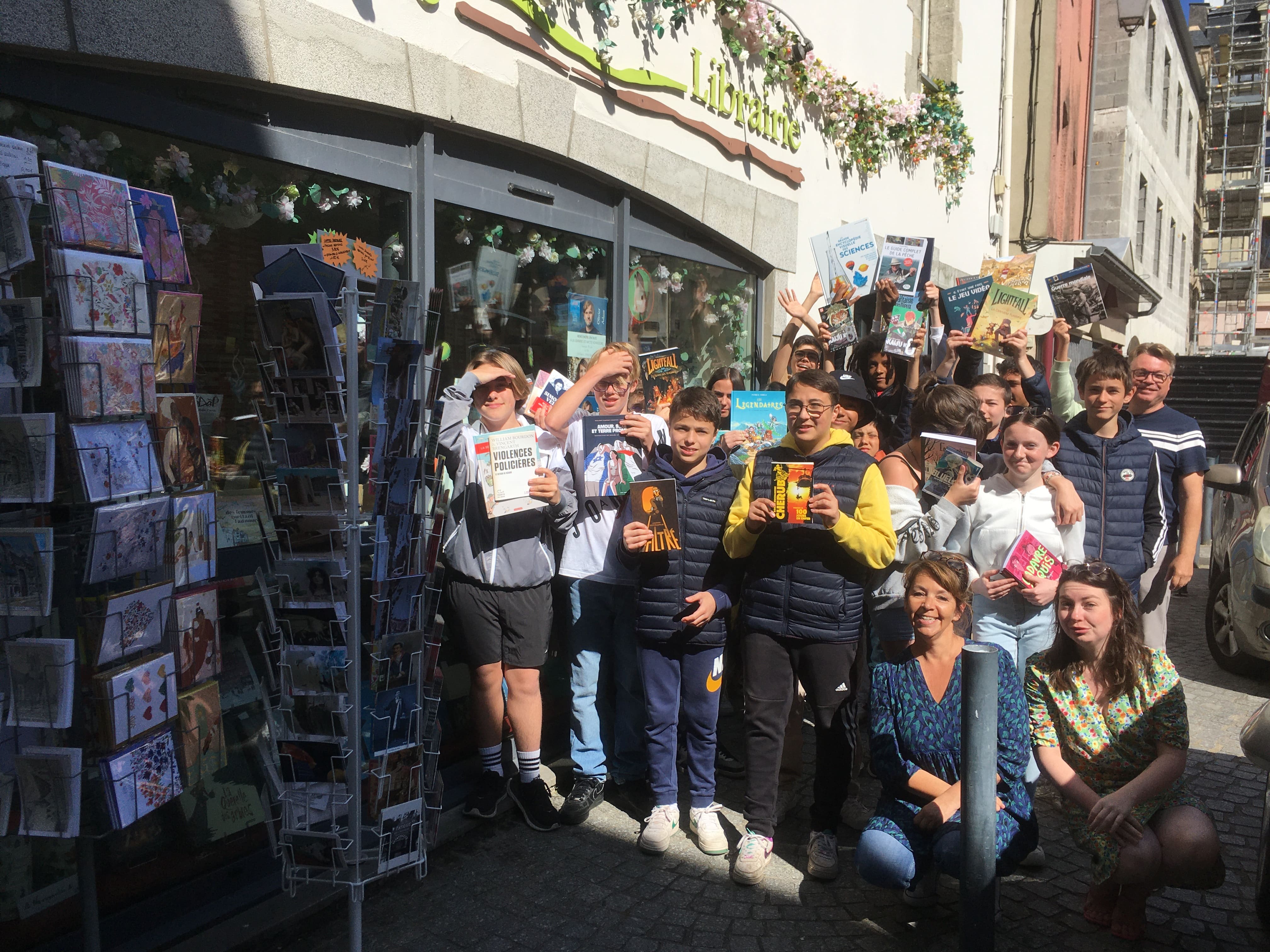 Dans le cadre du dispositif "jeunes en librairie" pour lequel notre classe de 3e a été sélectionnée, les élèves se sont rendus à la librairie Les mots voyageurs le 11 juin. Grâce aux conseils de Karine Clugery et Justine, les libraires, ils ont pu se faire plaisir et acquérir des livres avec le bon d'achat de 20 euros offert par la DRAC et le ministère de la culture.