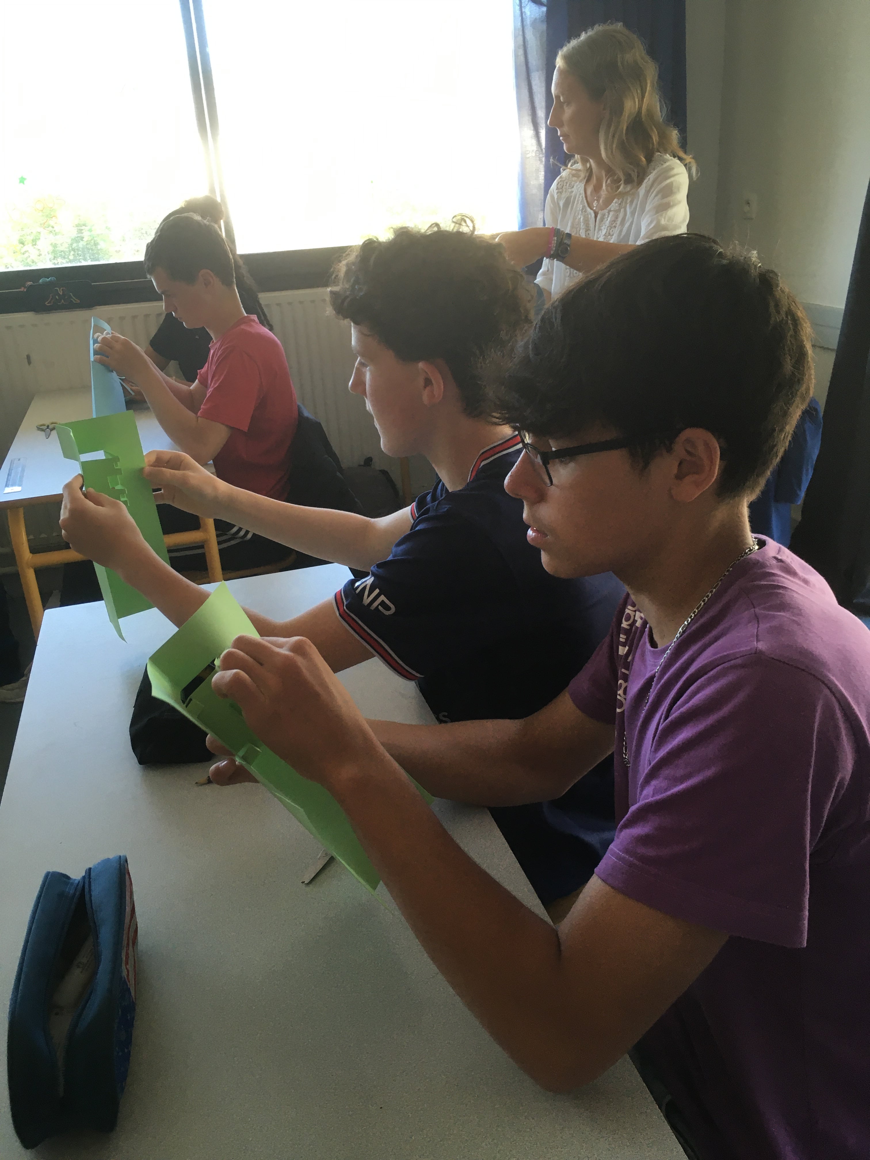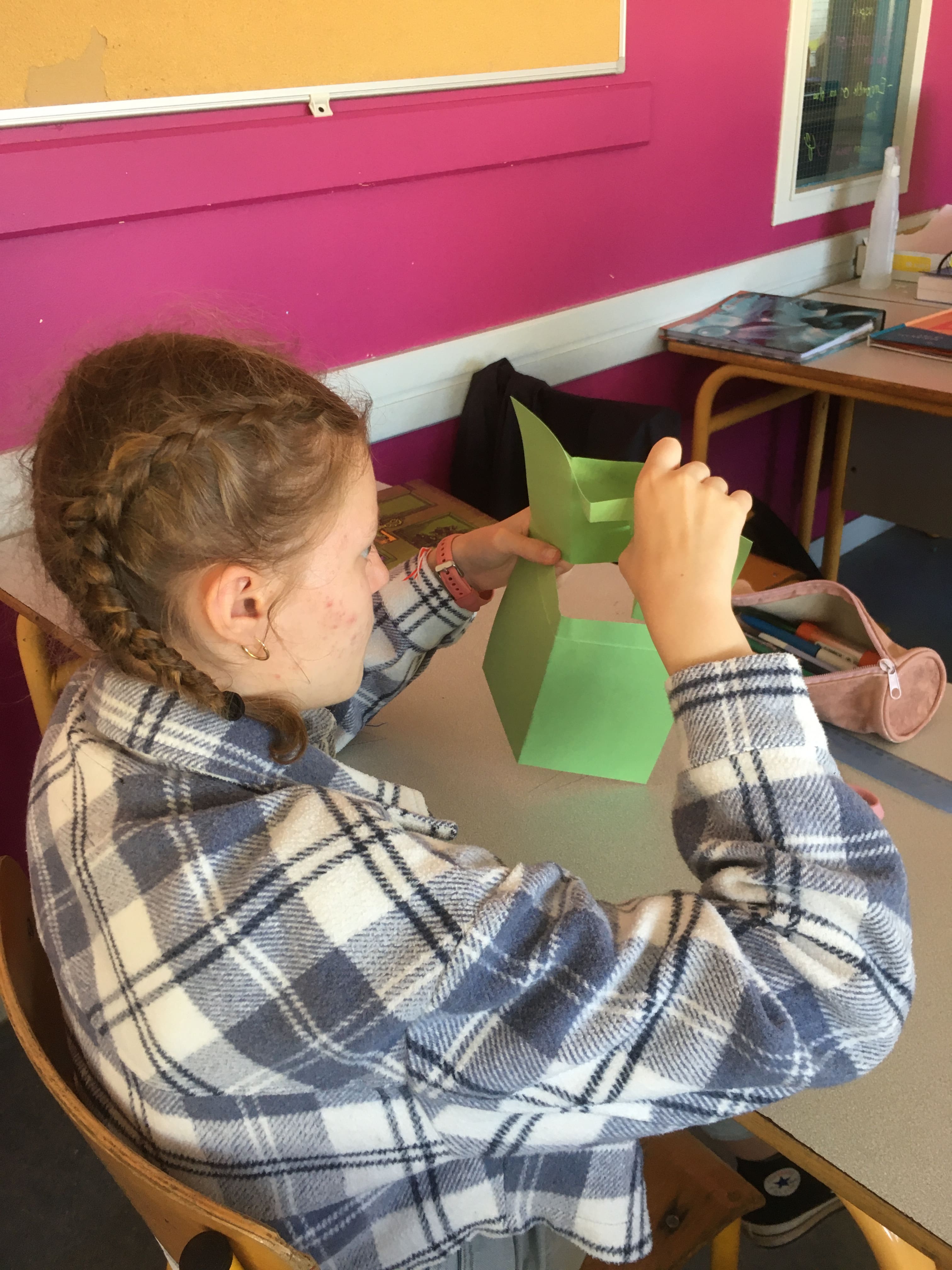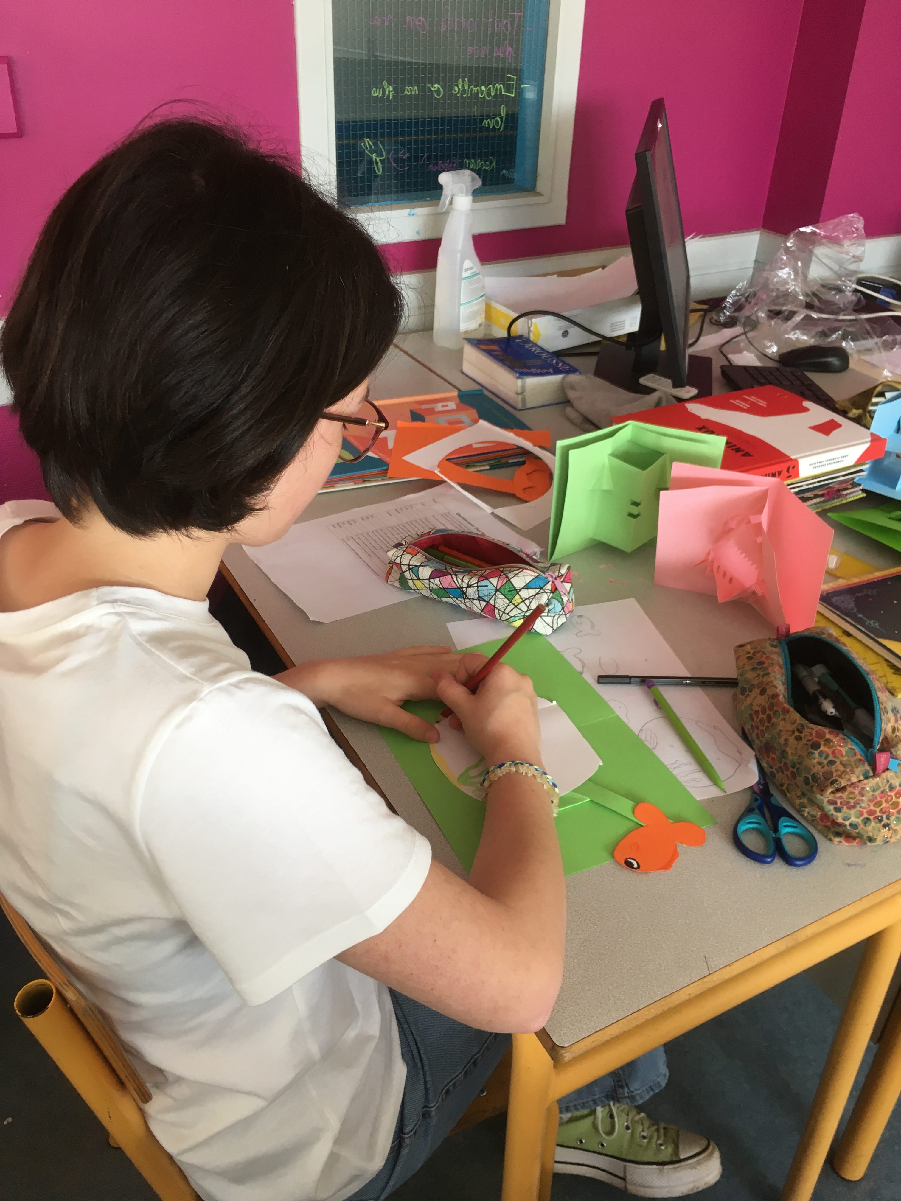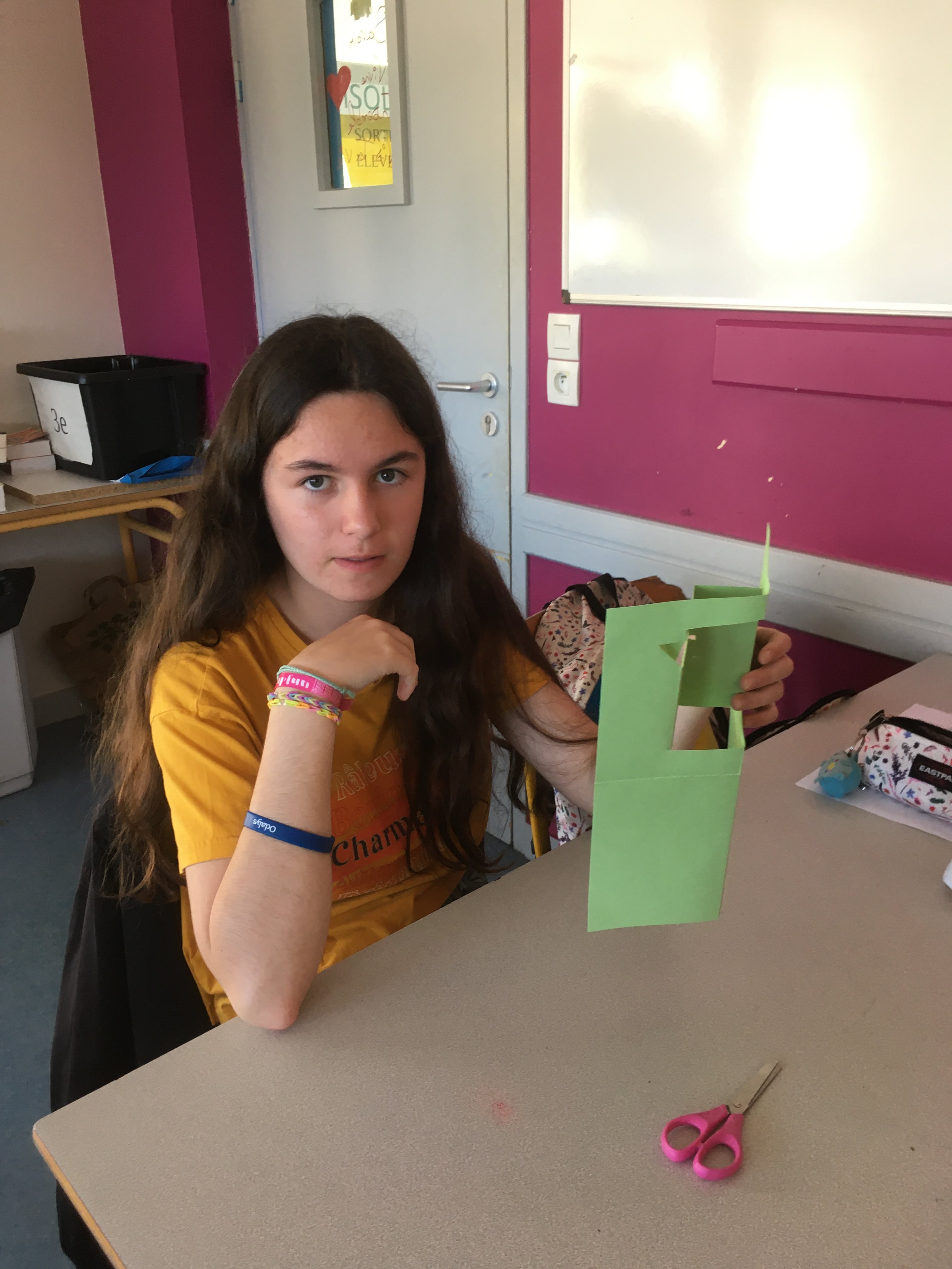 L’échange riche et animé a été suivi par un atelier ludique pour fabriquer une carte pop-up. L’occasion pour les élèves de laisser parler leur imagination et leur créativité. Les ciseaux ont sculpté maison, bateau, cerf, bonhomme de neige, cœur, sapin de Noël et volcan.