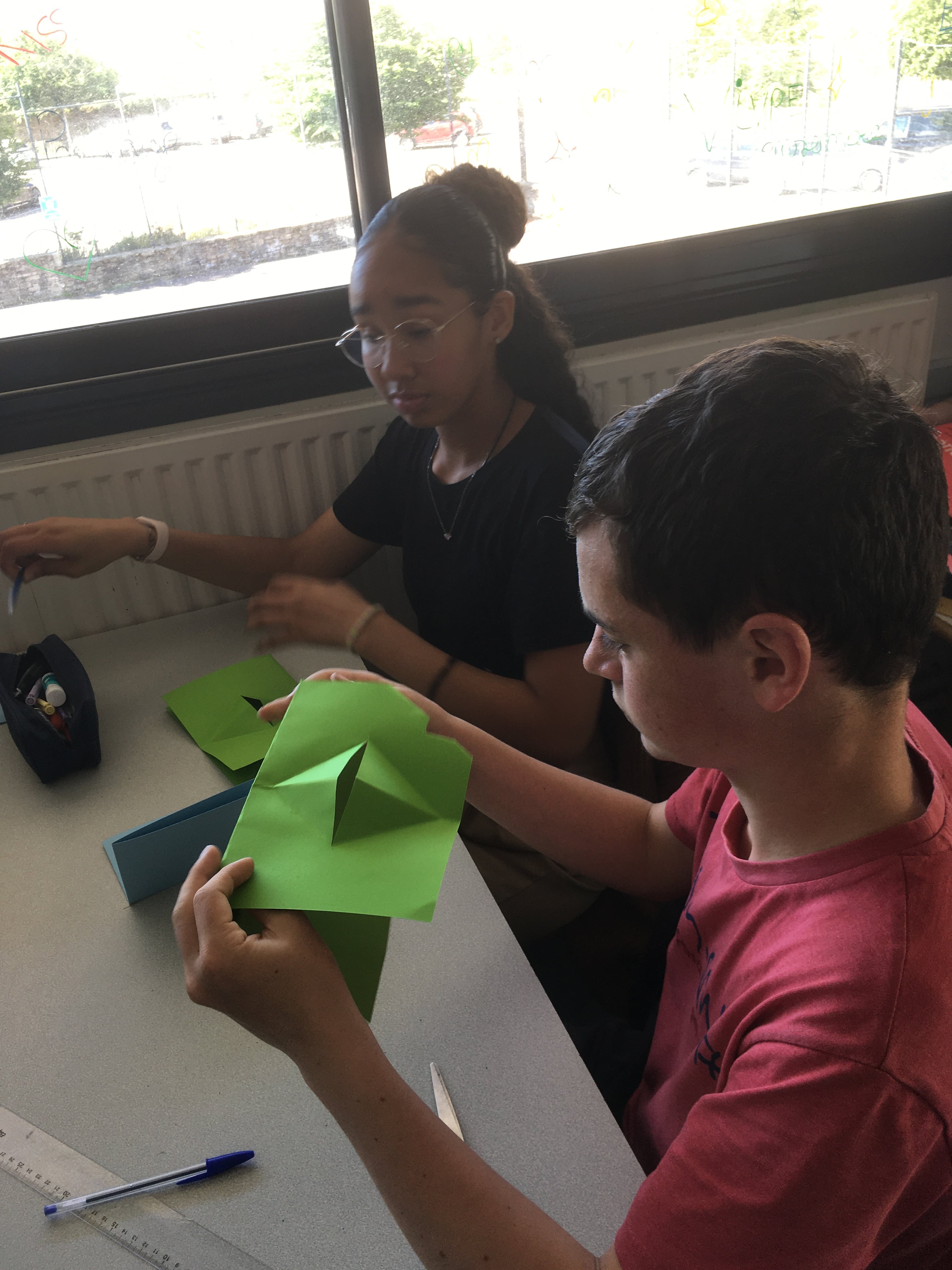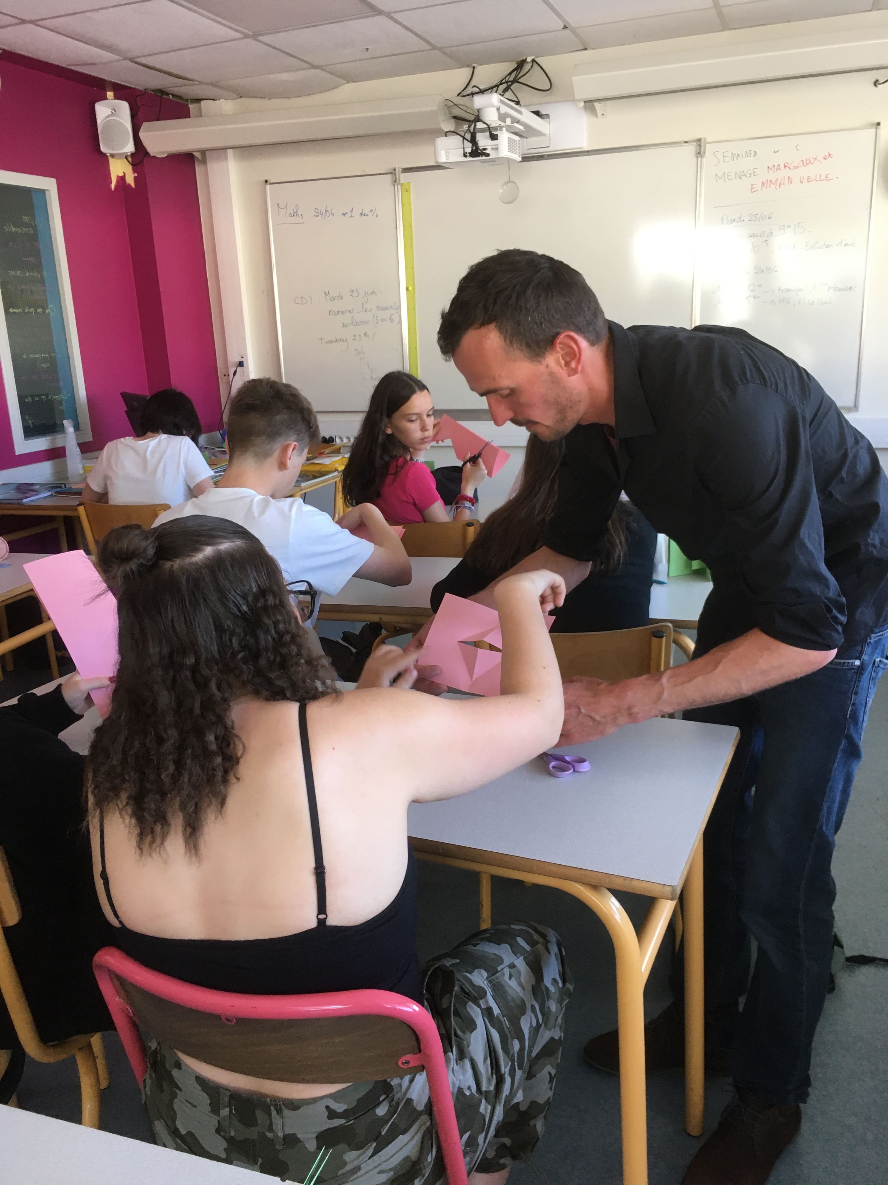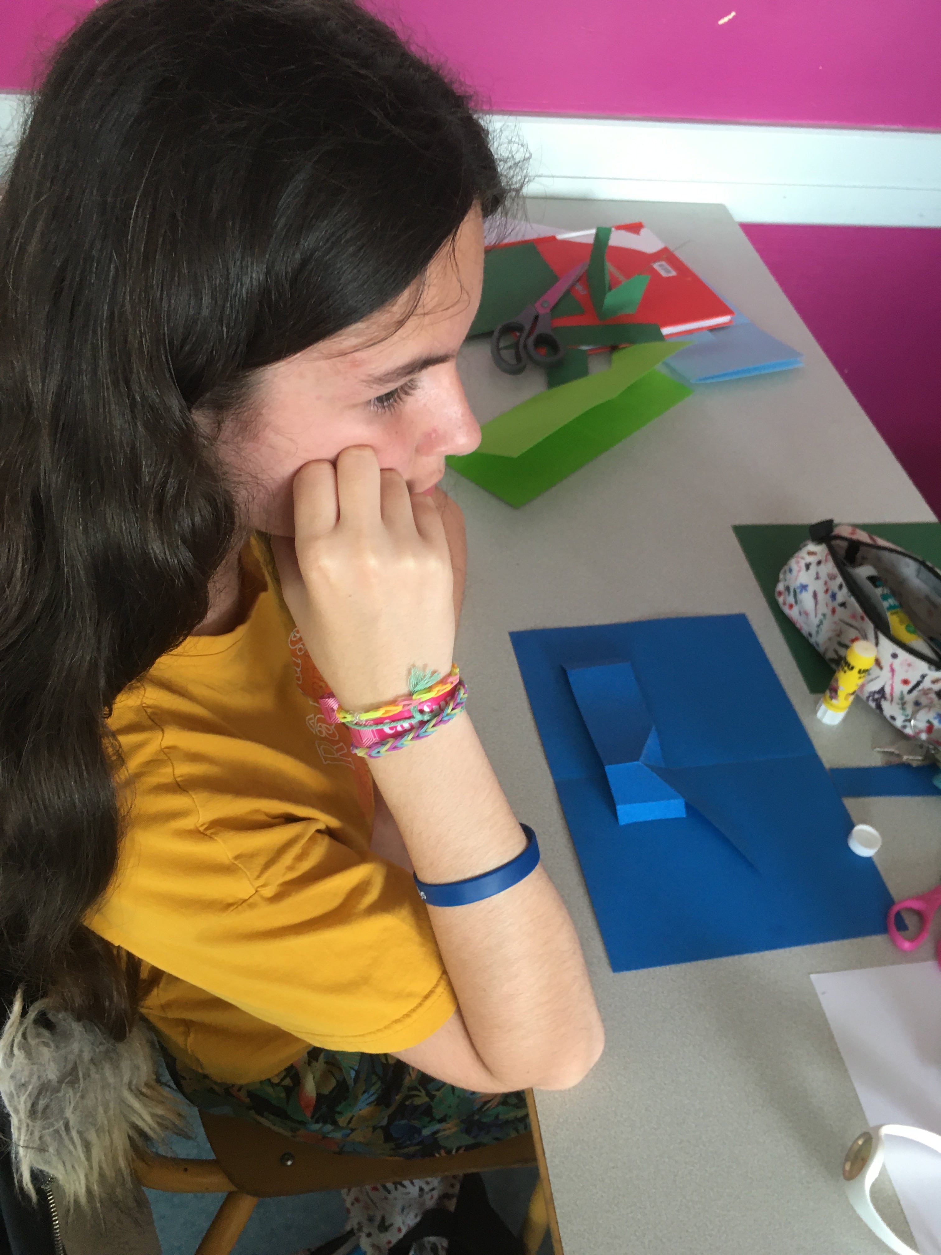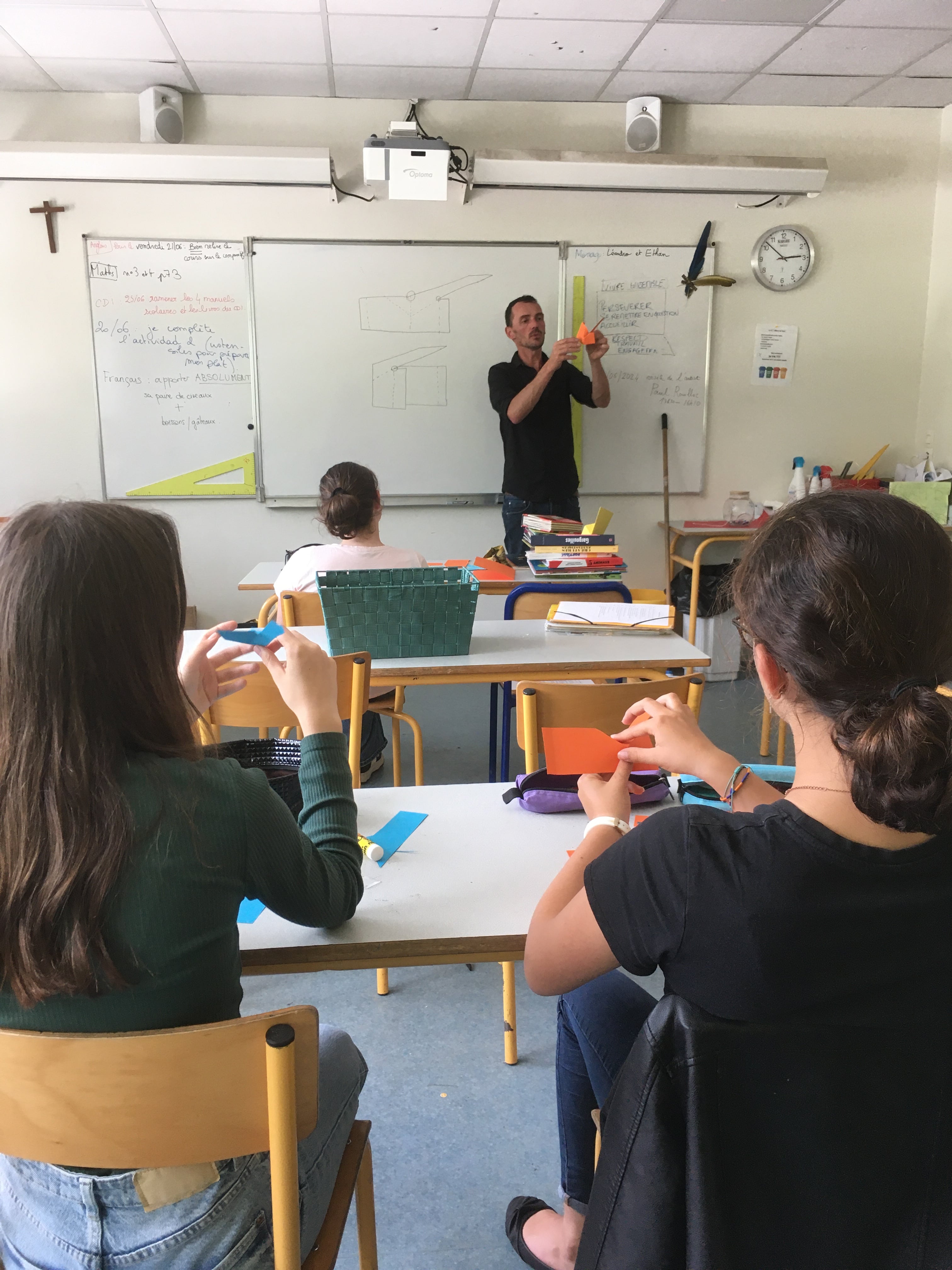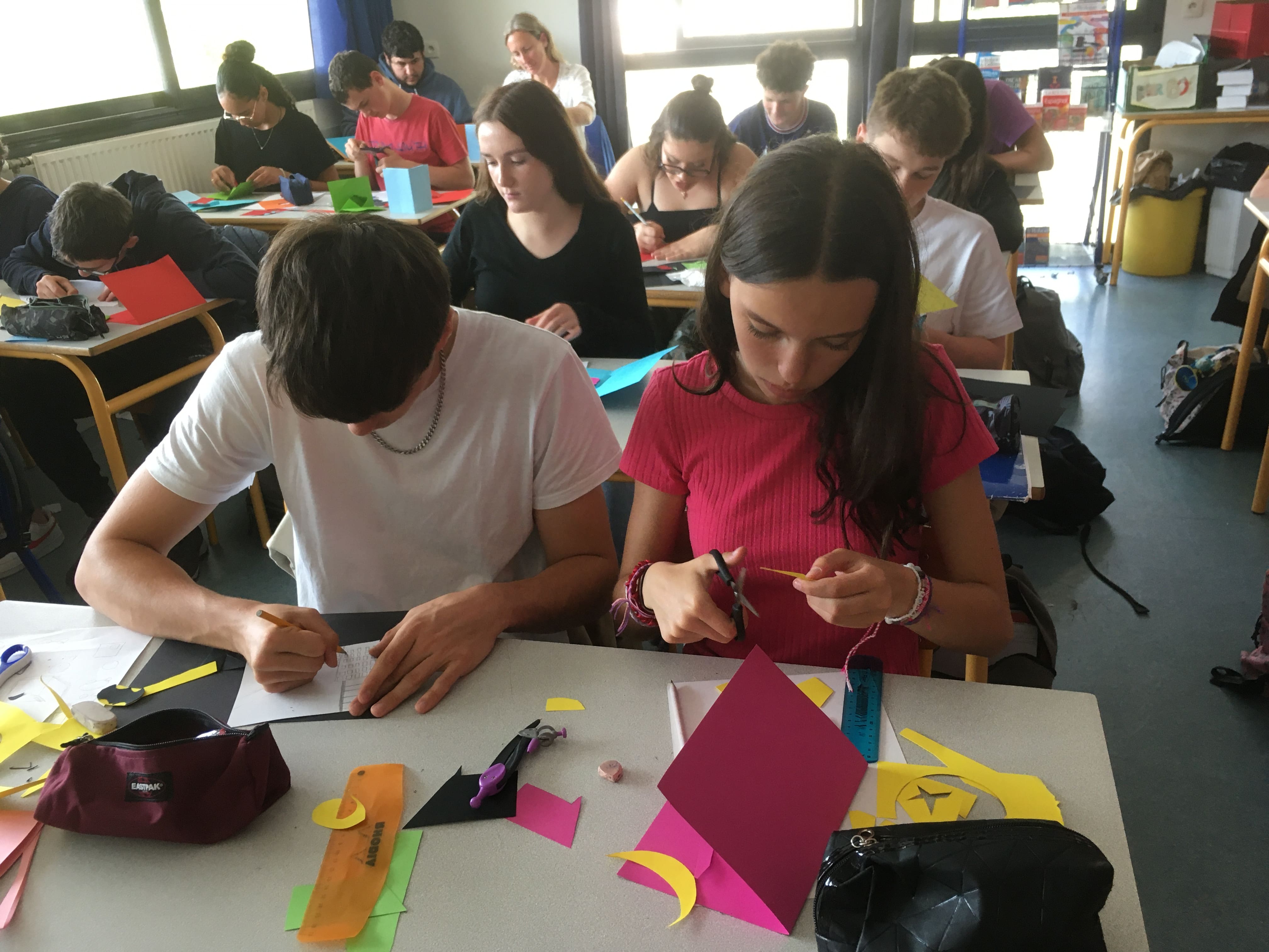 Le temps d'une demi-journée, les élèves de 5e et de 3e ont pu profiter d'un temps d’échange pour en apprendre plus sur son parcours et ses créations pop-up et sculptées, puis ils ont été initiés à l'art du pop-up.