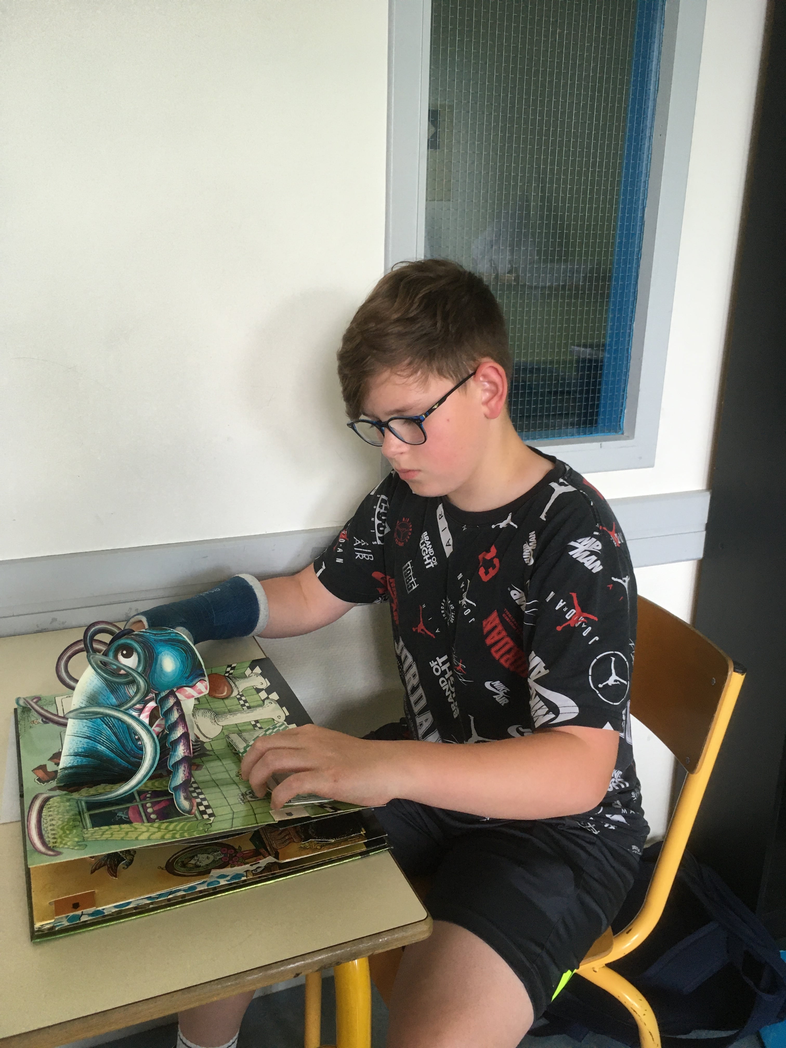 Les élèves ont d’abord échangé avec lui sur l’origine de sa passion pour les livres pop-up :  J‘aime avoir une surprise quand j’ouvre un livre  a-t-il expliqué. Puisant son inspiration en voyage, dans les musées ou chez d’autres auteurs, ses sujets de prédilection sont  les créatures légendaires, fantastiques qui permettent de s’évader, d’imaginer des histoires et de rêver.
