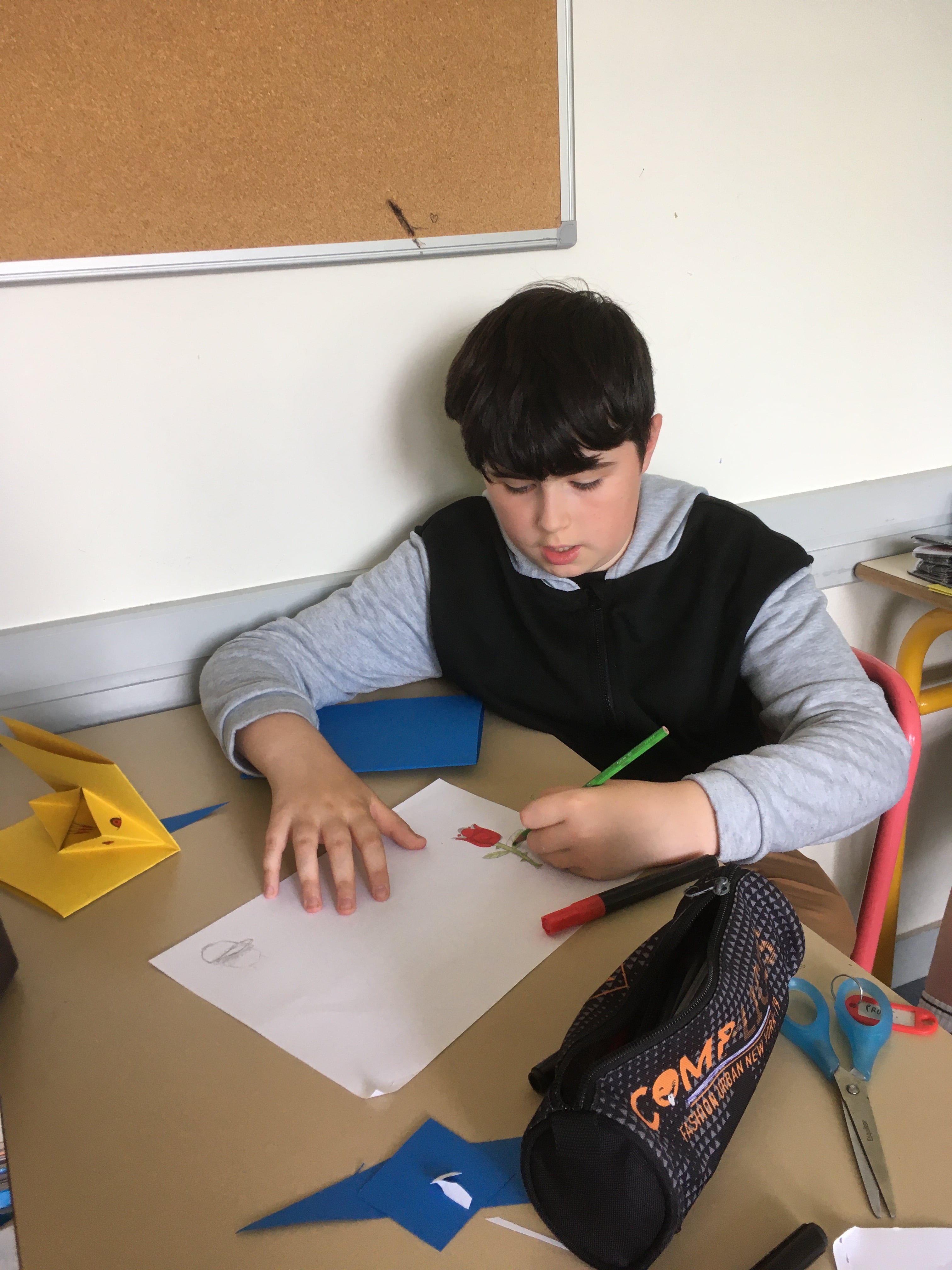Des créations colorées ont ainsi pris vie sur le papier en faisant naître des sourires sur les visages.  Une rencontre incroyable  pour Daphné et Inès, en 5e à Sainte-Croix qui sont rentrées ravies à la maison avec de belles cartes animées.